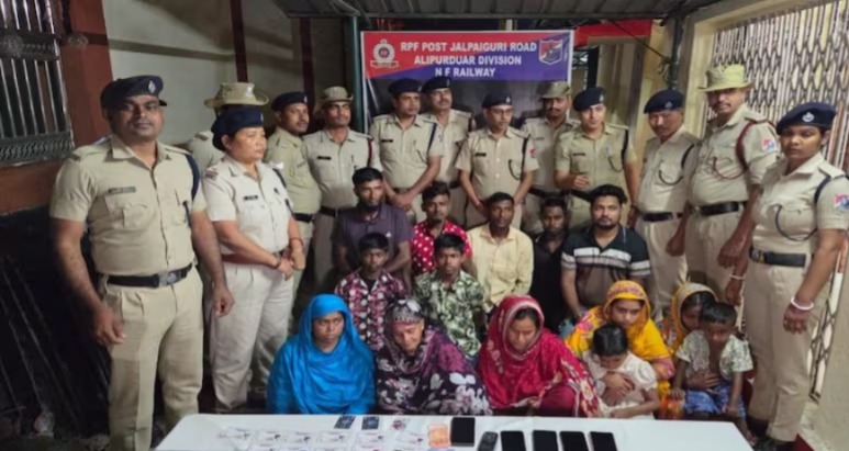 New Delhi: The Railway Protection Force apprehended 14 Bangladeshi nationals at Jalpaiguri Road railway station during a routine inspection of the Northeast Express train. Officials confirmed that the group included four women and four minors.