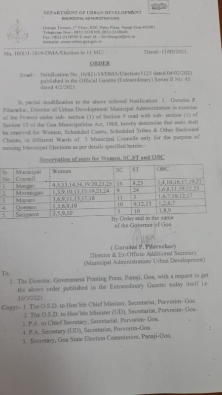 Goemkarponn desk PANAJI: A total of 53 wards have been reserved in Five Municipalities- Margao, Sanguem, Quepem, Mormugao and Mapusa,…