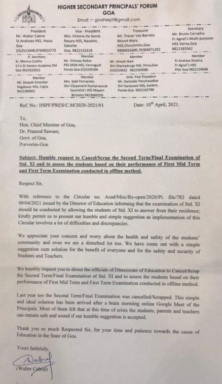 Goemkaponn Desk PANAJI: Higher Secondary Principals Forum has written to the Chief Minister Dr Pramod Sawant request to cancel the…