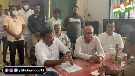 Goemkarponn desk VASCO: Micheal Lobo, Digamber Kamat and other Congress leaders rush to the Mormugao police station after FIRs on…