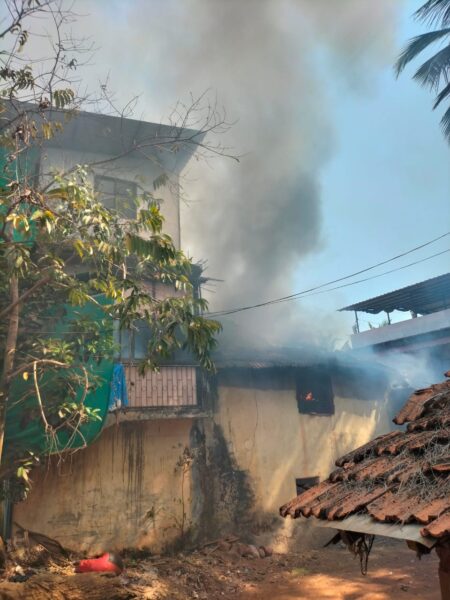Goemkarponn desk PONDA: A house in which three families resided caught fire at Kaswada Talavalim today morning at 10 am,…