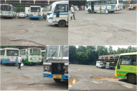 Commuters, passengers, and drivers demand repair / hot mix carpeting before monsoon The neglected Ponda interstate KTC Bus stand parking…