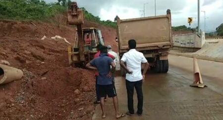 Goemkarponn desk VERNA: First rain showers lead to the washing of the road and the landslide at the Verna slope…