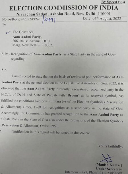 AAP Goa desk-in-charge and Delhi MLA Atishi today informed that an official notification has been received from the Election Commision…