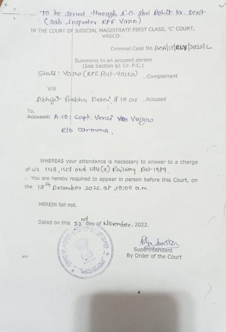 Goemkarponn desk MARGAO: Aam Aadmi Party’s Benaulim MLA Capt Venzy Viegas has been served a summons by JMFC Vasco for…