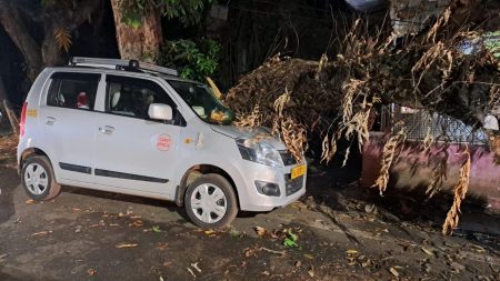 Goemkarponn desk CANACONA: A huge branch of an old Tree came crashing down on NH-66 road, damaging one Car and…
