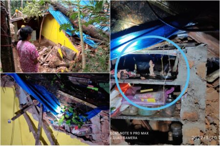 Goemkarponn desk PONDA: One jackfruit tree fell on Premila Naik’s house at Khadpaband, Ponda; however, luckily woman in the house…