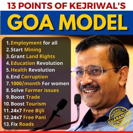 Goemkarponn desk PANAJI: On Sunday, Aam Aadmi Party (AAP) national convener and Delhi CM Arvind Kejriwal unveiled his party’s ’13-point…