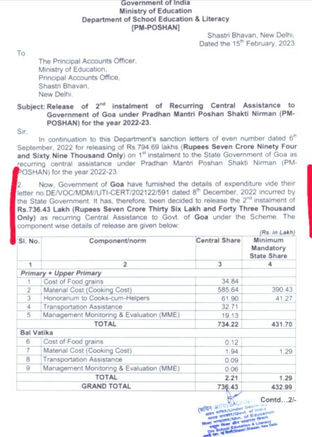 Goemkarponn Desk PANAJI: Amidst claim from Directorate of Education about non release of payement by Centre towards mid-day meal, the…