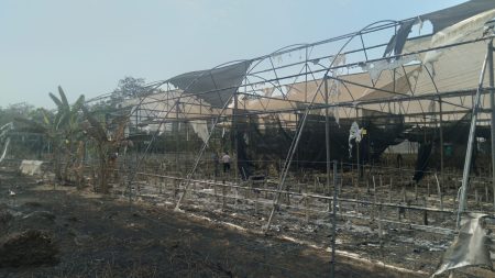 Goemkarponn Desk CANACONA: In a devastating fire inferno, apparently originated to dry-Grass, a huge Orchid Polyhouse goes up in flame…