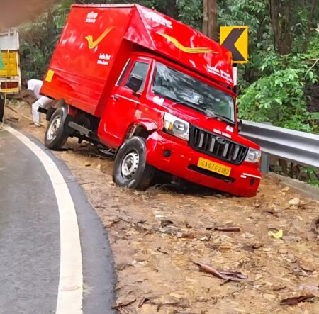 Team Goemkarponn Karmalghat: A postal delivery van en route from Margao to Canacona got stuck in loose soil at the…