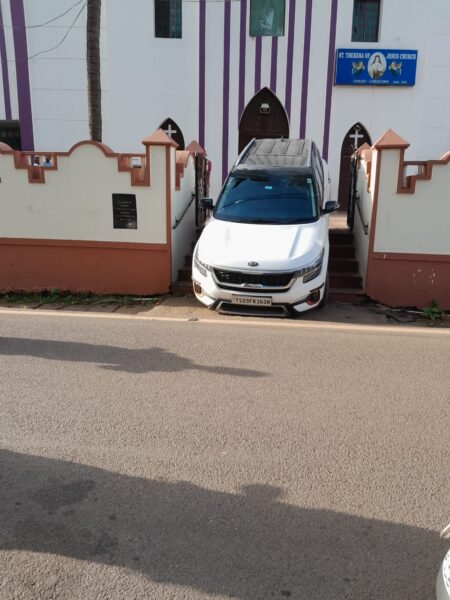 Team Goemkarponn CANACONA: An outstation vehicle mistakenly drove over a five-step staircase inside the compound of St. Theresa of Jesus…