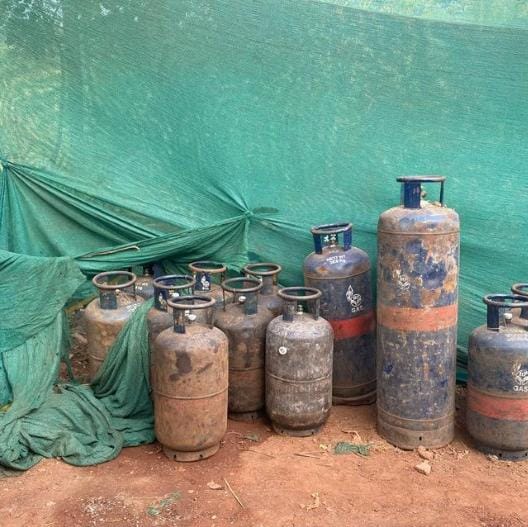 During the inspection in Sangolda, the officials spotted an LPG supply vehicle parked at an isolated spot. When the team questioned the driver and a worker present at the site regarding the cylinders, both individuals reportedly fled from the location.