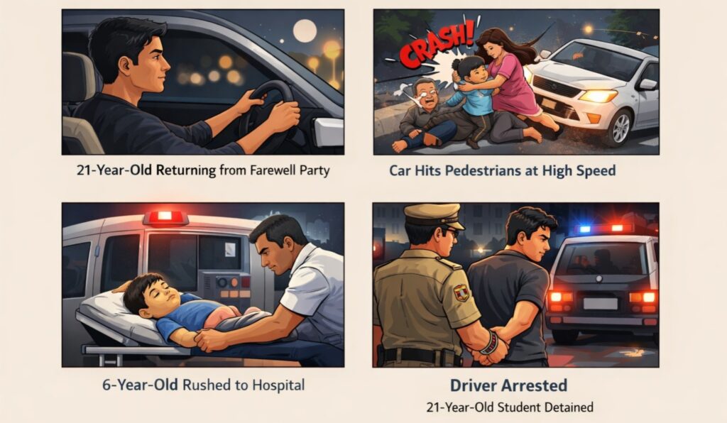 LUCKNOW: In Lucknow, a 6-year-old boy lost his life after being struck by a car driven by a 21-year-old Class 12 student who was returning from a farewell event. The tragedy unfolded late on Friday evening when the child was crossing the road in the city’s Alambagh area.