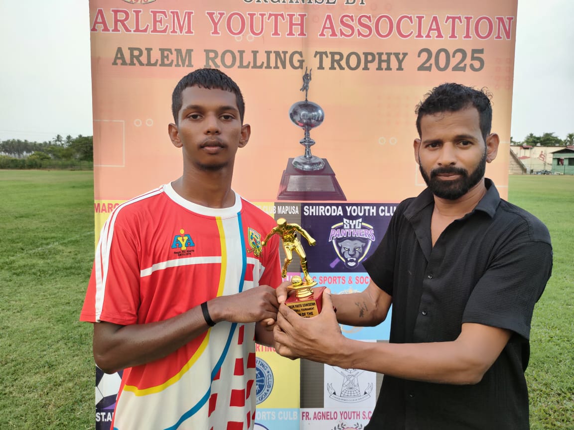 Velroy Borges of Arlem Youth Association was named Man of the Match for his impactful performance, receiving the award from Jerome Colaco, President of Arlem Youth Association.
