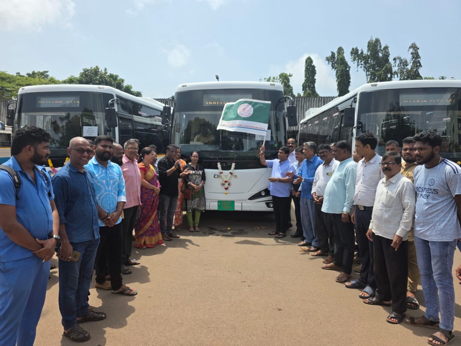 Team Goemkarponn VASCO: Vasco MLA Krishna Salkar on Saturday launched four electric buses (EV) at the Vasco Kadamba bus stand in the presence of Mormugao Municipal Council (MMC) Chairperson Girish Borker, City ward councillor Shami Salkar, officials of the Kadamba Transport Corporation Limited (KTCL) and local residents. Speaking at the launch, Salkar said the buses would operate on the Vasco–Margao route. “This is a long-pending demand of the people, which I had raised in the assembly. We had received assurance from the Transport Minister that EV buses would be provided soon. Today, Goa has received a total of 14…
