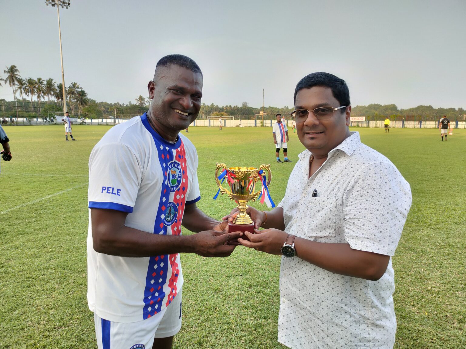 Goemkarponn Desk BENAULIM: In an exhibition match at Sag Ground Vaddie Benaulim, Benaulim Veterans triumphed over AVC Veterans 3-2. Benaulim’s Pele Fernandes scored twice in the first half, putting his team ahead 2-0. AVC Veterans displayed disciplined football in the second half, with Mario Soares and Jerry equalizing. The decisive goal came from Stanley, who scored with a deft placement off an assist by Luis Menino. Benaulim’s goalkeeper Manoj secured the victory with a crucial diving save in the final moments. Benaulim MLA Venzy Viegas, the chief guest, distributed the prizes.