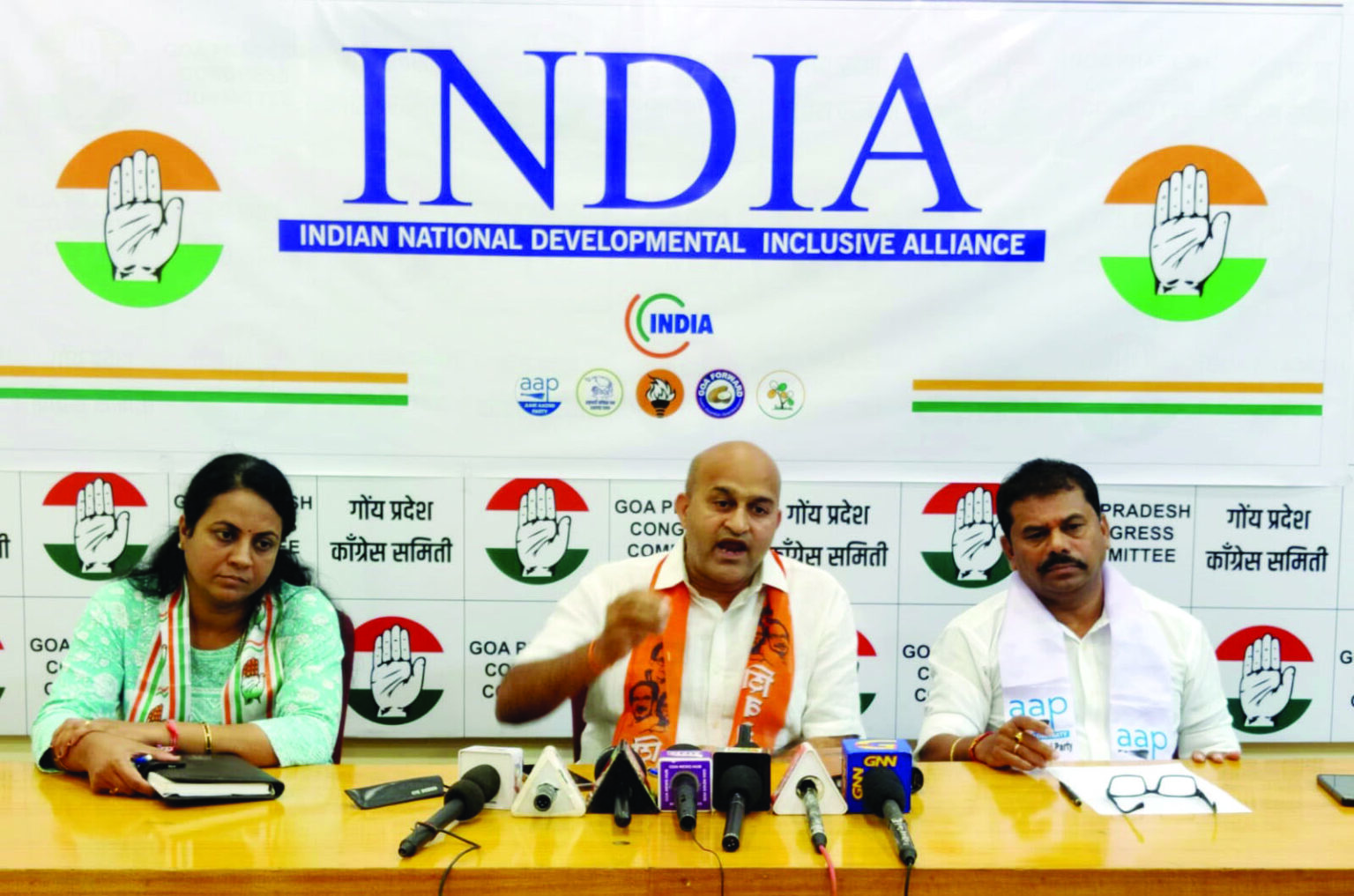 Goemkarponn desk Panaji: INDIA bloc leaders on Tuesday accused the BJP of organised corruption and it was very evident during the national games. In a joint press conference, Shivsena (UBT) President Jitesh Kamat, Congress leader Manisha Usgaonkar and AAP leader Rajesh Kalangutkar attacked the BJP government over corruption. Jitesh Kamat said that earlier some notorious drug paddlers brought ‘organised crime’ to achieve their goals, similar to how the BJP is also working. “Be it Kala Academy or any other project. They have systematically looted the state exchequer,” Kamat said. Kalangutkar said that organised corruption is also taking place in the…