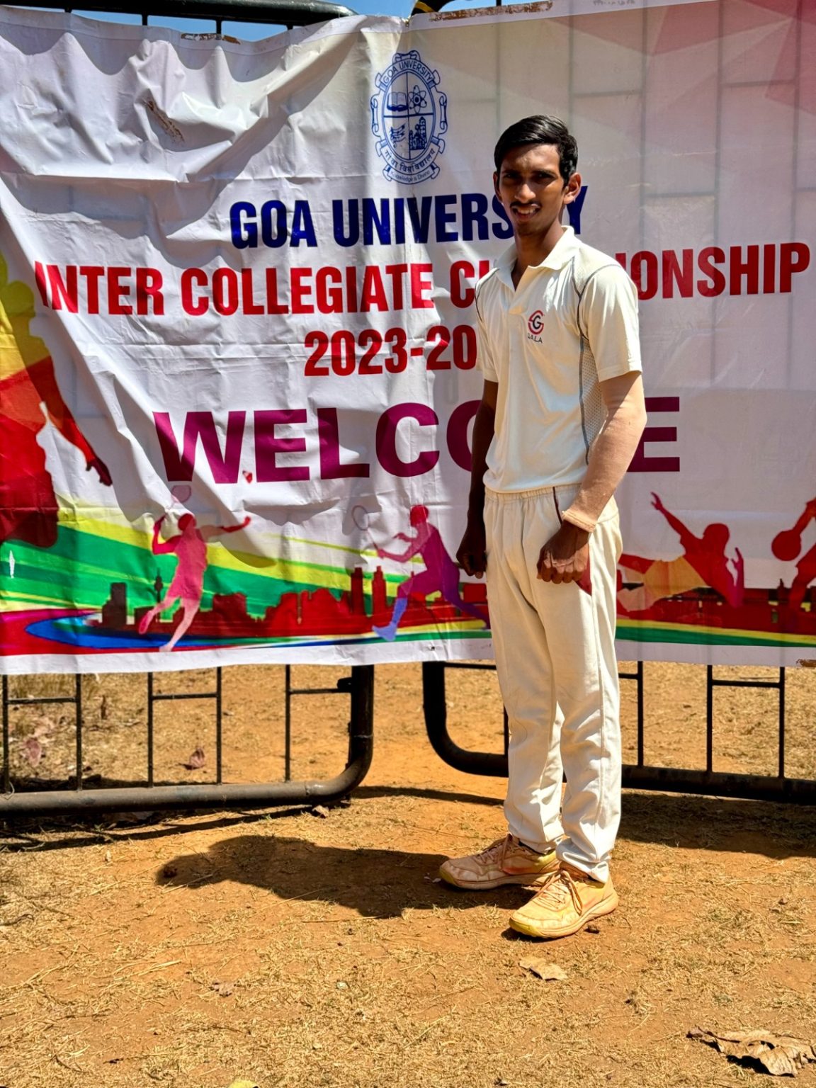 Goemkarponn desk PANAJI: G.V.M’s GGPR College, Ponda defeated Goa College of Arts, Altinho by 99 runs in the inaugural match of the Goa University’s annual Inter Collegiate Cricket Men’s Championship 2023-24, at Goa University Cricket Ground, Taleigao. Put into bat first, G.V.M’s GGPR College, Ponda scored 218/8 in 20 overs. Pratham V. 49(35) not out, Jagdish Somji 48 (24) Nikhil A. 2/45, Rohan B. 2/34 In reply, Goa College of Art 119/10 in 17.2 overs. Nikhil A. 20(20), Tribhavan S. 14(10) were top scorers for Arts college. Ravi Jaiswal 3/32, Ved P. 2/13 picked wickets for GVM. Highest Scorer: Pratham…