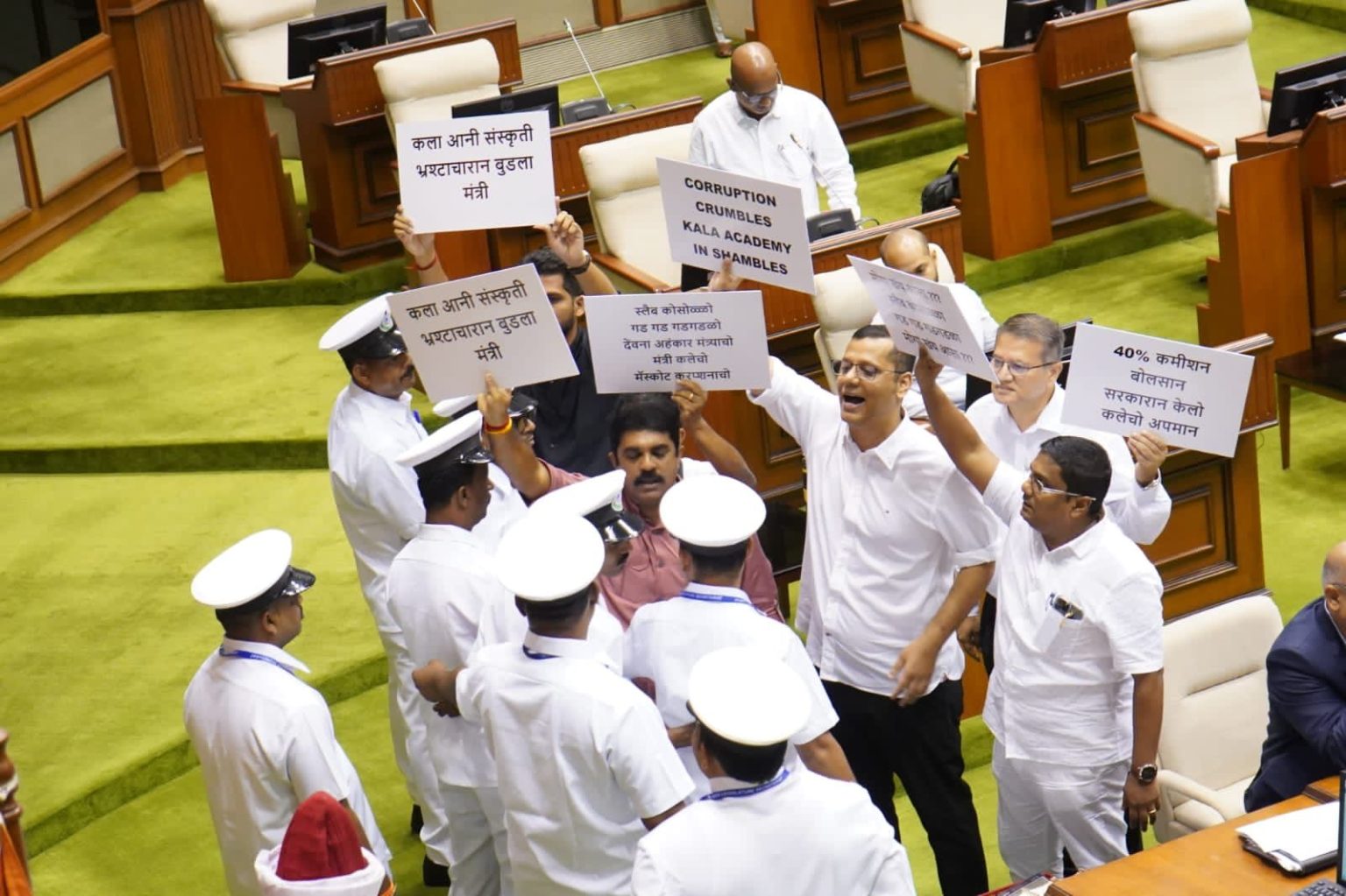 *KA Roof Collapse: Opposition create ruckus, demands Min Gaude’s resignation, FIR to be filed Goemkarponn Desk PORVORIM: The Kala Academy roof collapse incident dominated the first day of the monsoon session of Goa Legislative Assembly as opposition demanded detailed discussion on the issue. The roof of the open auditorium of under renovation Kala Academy building collapsed on the intervening night of Sunday-Monday raising serious doubts into the irregularities in the renovation work. The opposition led by Leader of Opposition Yuri Alemao moved a adjournment motion demanding suspension of Question Hour and to discuss the urgent matter regarding collapse of Kala…