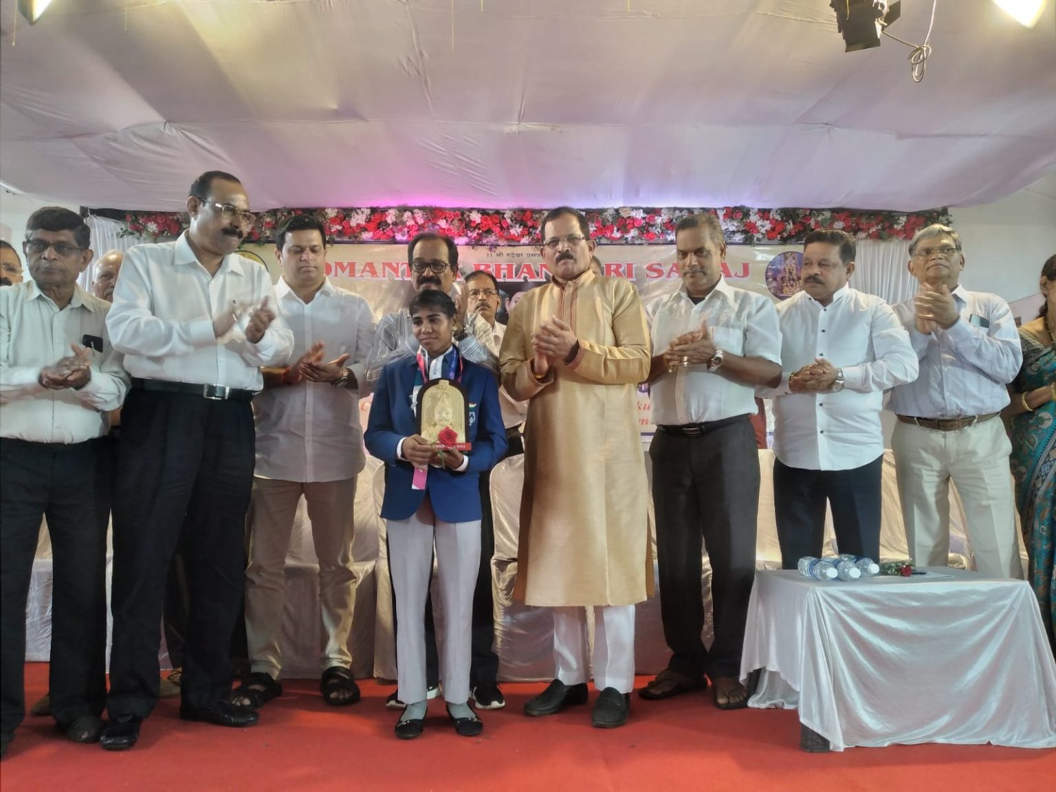 Goemkarponn desk VASCO: Gomantak Bhandari Samaj, Central Executive Committee organized a special felicitation program at Pragati Sankul, Cricketer Shubham Naik community hall, Mapusa, to felicitate all the Bhandari community students who have passed with flying colours in std X, XII, Graduation, post-Graduation other vocational fields during the curricular year 2022-23 along with Eminent Bhandari Community persons who have excelled in various field and made the Bhandari Community and Nation Proud. The most prominent was Gitanjali Nagvenkar, who made the nation proud by winning Gold Medal in 800mts. Running athletic event at 2023 Special Olympics World Summer Games held in Berlin…