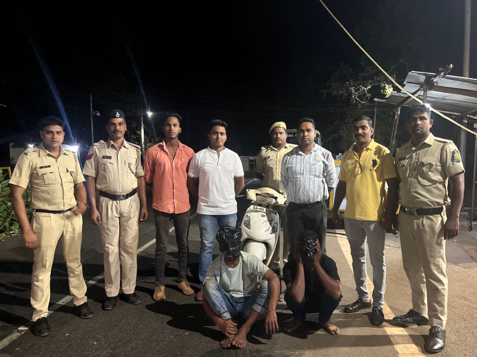 Goemkarponn Desk MOLLEM: The Border Checkpost Police at Mollem has arrested two Karnataka natives for committing theft of scooter at Usgao. As per information, pleasure vehicle having Reg No. GA-09-J-3154 with two occupants without wearing helmet were proceeding towards ANMOD direction from Mollem, as they had not worn helmet they were tried to stop by showing hand signal. After seeing the Police staff they gain more speed and proceeded towards ANMOD direction crossing the border in rash and negligent manner. Further HC 4732, PC 5982, HG Nadaf chased the said vehicle with M/cycles. After seeing Police staff coming behind they…