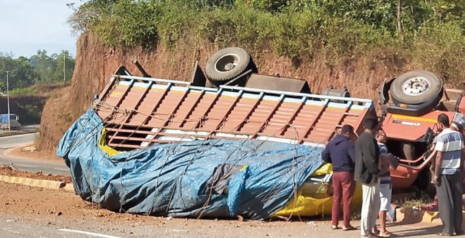 Goemkarponn Desk PERNEM: In a shocking accident, a overloaded container truck carrying liquor overturbed at Torse on a sharp turn. The incident took place at 5.30 am on the Mumbai-Goa highway. After the accident, the liquor inside was scattered on the road. Fortunately, the driver and the cleaner escaped unscathed. The driver suffered minor injuries. Meanwhile, both truck occupants have been detained by the Goa Police. As per information, liquor was being transported to Haryana via train. Information reveals that the driver lost control and the container overturned on a divider in the middle of the road on a tricky…