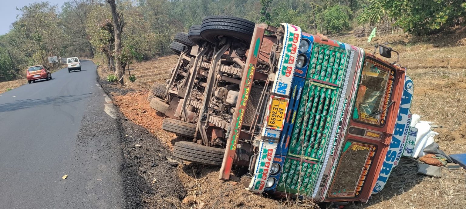 Goemkarponn Desk CANACONA: With neither sides of NH-66 road at Gulem is safe for motorists, Heavy vehicles especially inter-state vehicles continues going down the road in Canacona section of National Highway. Late, Thursday night, yet another loaded truck bearing registration no. AP 21-TE 3699 coming from Margao and going towards Karnataka fell in the fields below after its wheels went over the road by inches. Driver and a Cleaner escaped without any major injuries, informed a source. According to the driver, while driving on the straight road, he has just moved the steering to the slight lest to give a…