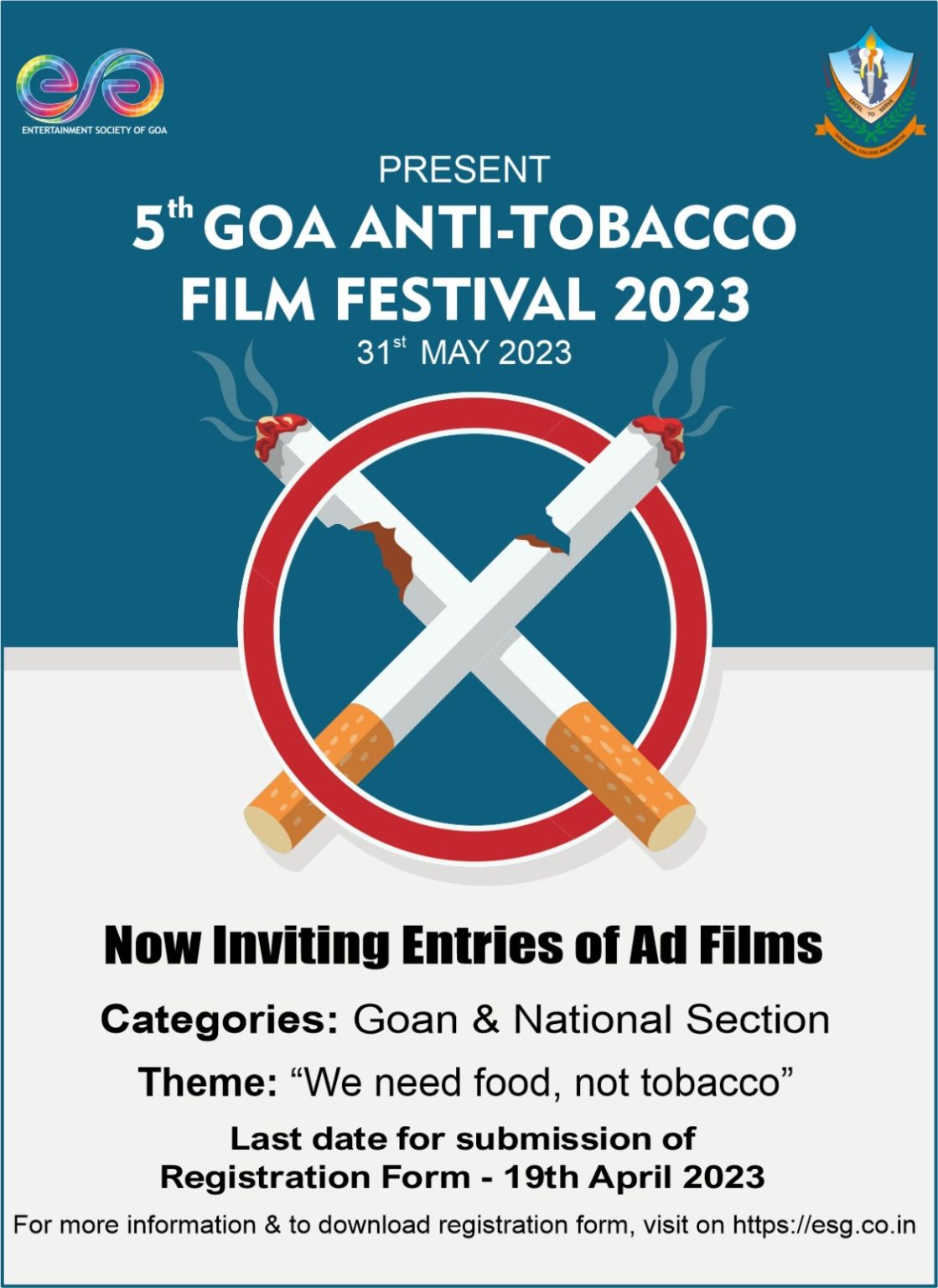 Goemkarponn desk PANAJI: The Entertainment Society of Goa, in association with the Department of Public Health Dentistry, Goa Dental College and Hospital, is organizing the 5th Goa Anti-Tobacco Film Festival on 31st May 2023. The aim of this festival is to select Ad Films to spread the message of the harmful effects of tobacco use and its ill effects, to decrease the occurrence of Oral Cancer and heart disease and to promote film art through the non-profit screening of these films. The ultimate objective is to render Goa smoke-free. This festival will be held in two sections, the Goa section…