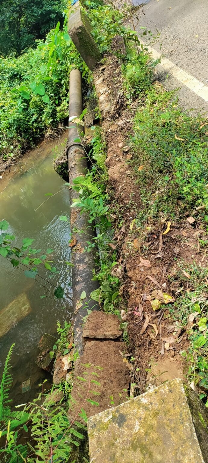 Goemkarponn Desk CANACONA: A laterite stones wall erected by PWD as safety on the culvert bridge at Dumane on Canacona-Agonda road has collapsed. According to sources, an unknown vehicle driven by visitors/tourists going towards Agonda and while negotiating the sharp right-turn right at the bridge approach has knocked down the Laterite Stones Safety Wall, throwing a large chunk of Laterite Stones Wall onto the Concrete Water Supply Pipeline(lying alongside the culvert) than into rivulet below. It may be recalled that the Dumane Culvert bridge been notorious for several mishaps resulting in several accidents with many vehicles including 2-wheelers plumetted over…