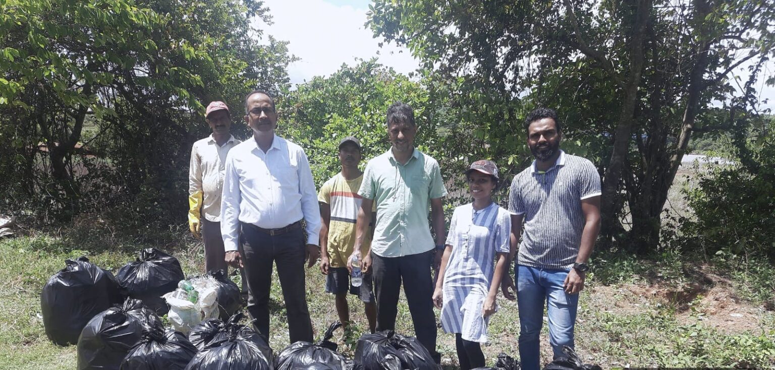 Goemkarponn desk VASCO: The teaching and non-teaching staff of St. Joseph Vaz College, Cortalim, undertook a pre-monsoon garbage clean-up drive from Sancoale Health centre to Sancoale lake as a part of community service. In a press note issued by Fr. Bolmax Pereira, parish priest of Chicalim, ” It is ridiculous that the roadside area just opposite the health centre has been turned into a garbage dumping site by irresponsible and insensitive citizens, and the panchayat body is turning a blind eye to the health hazards of it” said Fr. Bolmax Pereira, dept. of Botany. “If the dumped garbage is left…