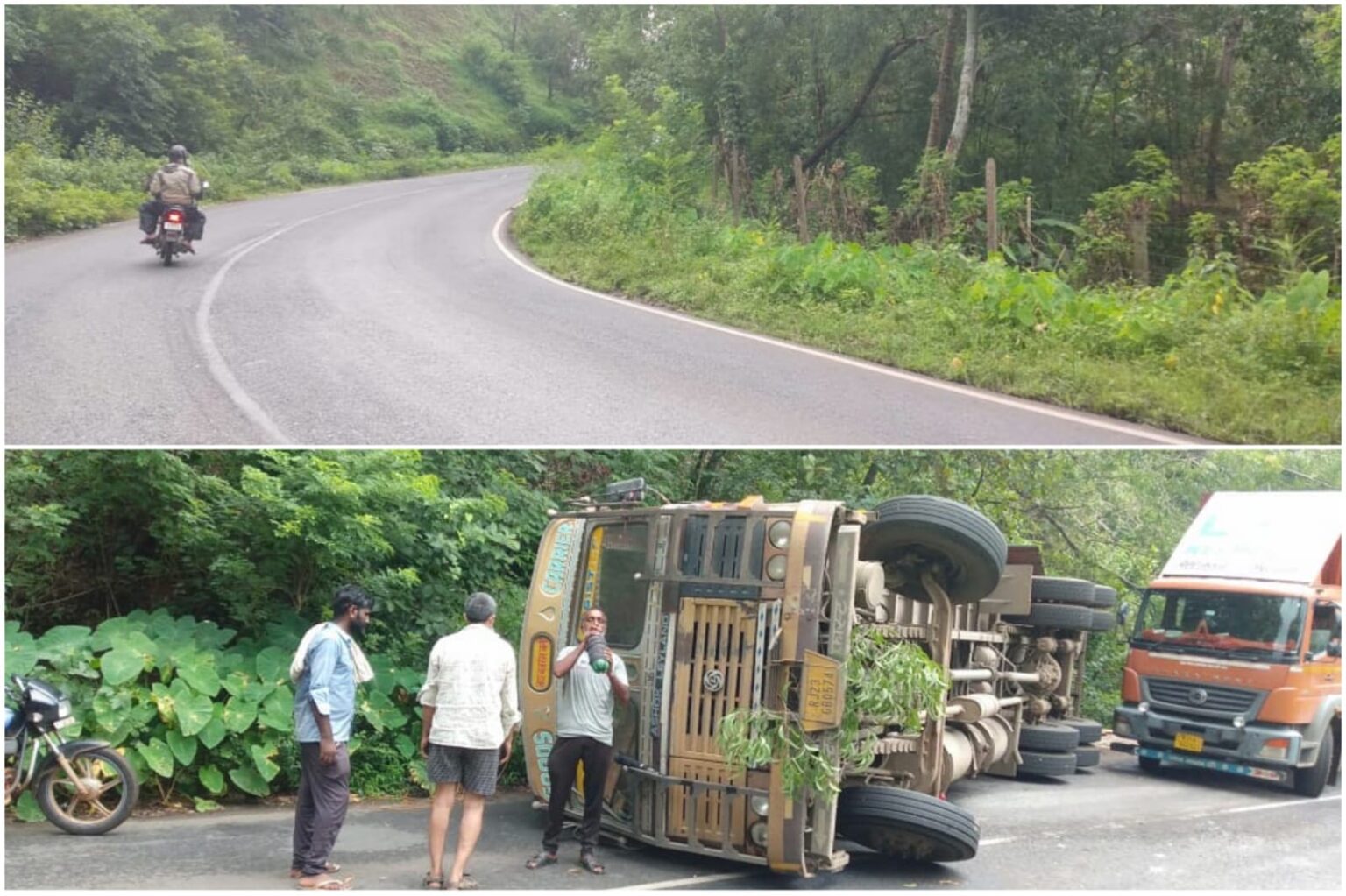 Goemakrponn desk PONDA: After the KTC bus went off road side at Apewal Priol, another truck container truck went off the road and fell on its side early morning today at 1.30 am went off road at Sharp Bythokhol Borim turn located on Borim- Bypass road on Margao – Belgaum Highway. Locals blame the politicians for not clearing sharp turns on Highway. They say cattle is another reason for accidents. According to the driver who escaped with minor injuries, he carried a load of tyres from Usgao tyre Factory towards Hyderabad. When he reached Bythokhol Borim sharp turn, he saw…