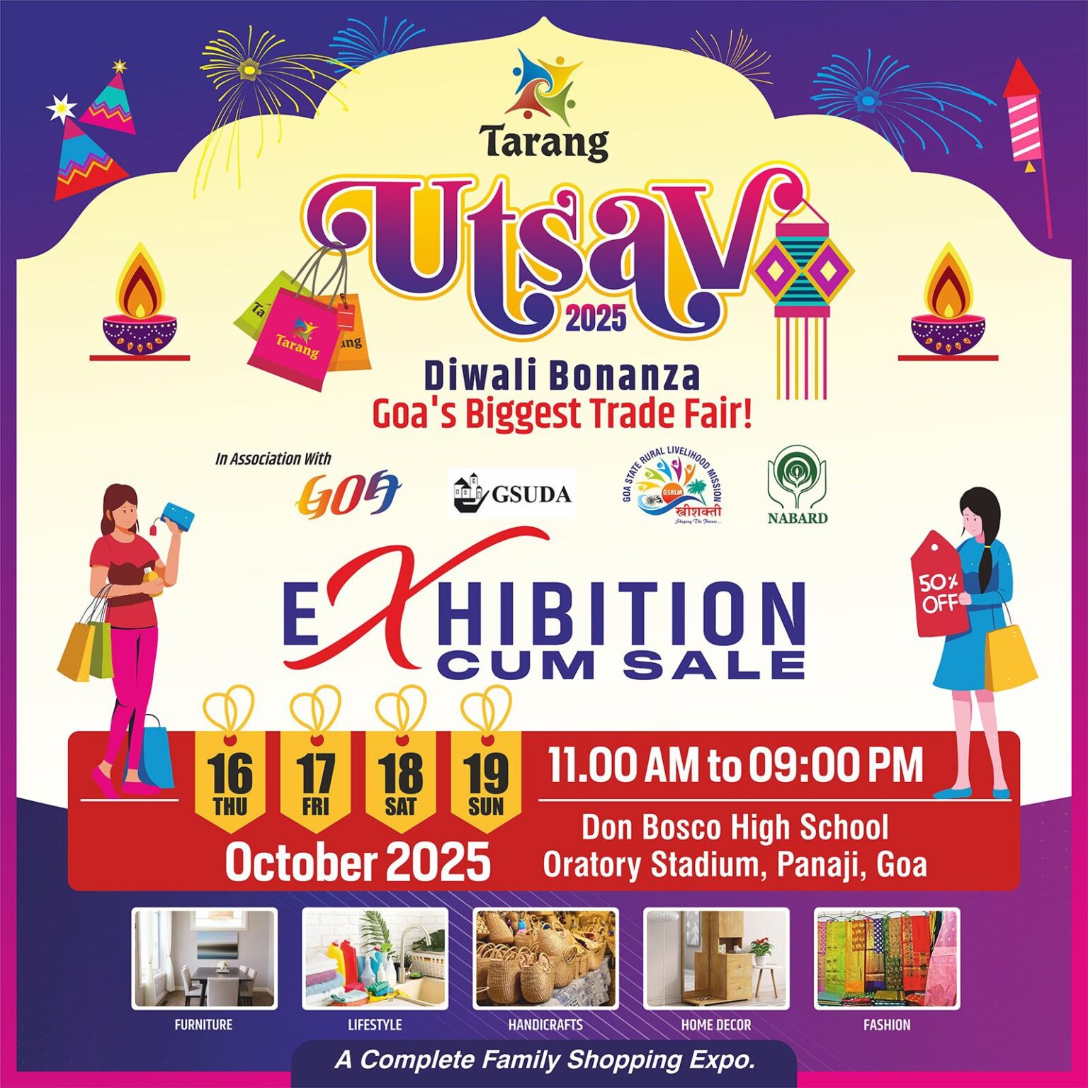 Team Goemkarponn PANAJI: Goa is all set to celebrate the festive season with the much-awaited Tarang Utsav 2025 Diwali Edition, a four-day shopping festival bringing together the best of fashion, lifestyle, and local craftsmanship. The event will be held from 16th to 19th October 2025 at Don Bosco Oratory, Panjim, running daily from 11 AM to 9 PM. The festival promises a vibrant shopping experience with over 150 stalls featuring products from across India alongside Goa’s finest local brands. Shoppers can explore an extensive range of offerings, including festive collections, designer kurtis, apparel, furniture, home décor, gift hampers, and…