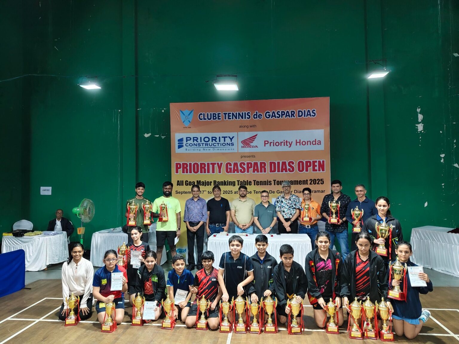 Team Goemkarponn PANAJI: The Priority Gaspar Dias Open All Goa Major Ranking Table Tennis Tournament 2025, powered by Priority Constructions and organised under the aegis of the Goa Table Tennis Association (GTTA) at Clube Tennis de Gaspar Dias, witnessed thrilling action as Ishita Colaso and Aaron Farias dominated the event. Ishita clinched a rare triple crown, winning the U15 Girls, U19 Girls, and Women’s singles titles, while Aaron captured a double crown with victories in the U19 Boys and Men’s singles categories. The finals across age groups offered intense battles. In the U11 section, Ishaan Colaso defeated Ashank Dalvi…