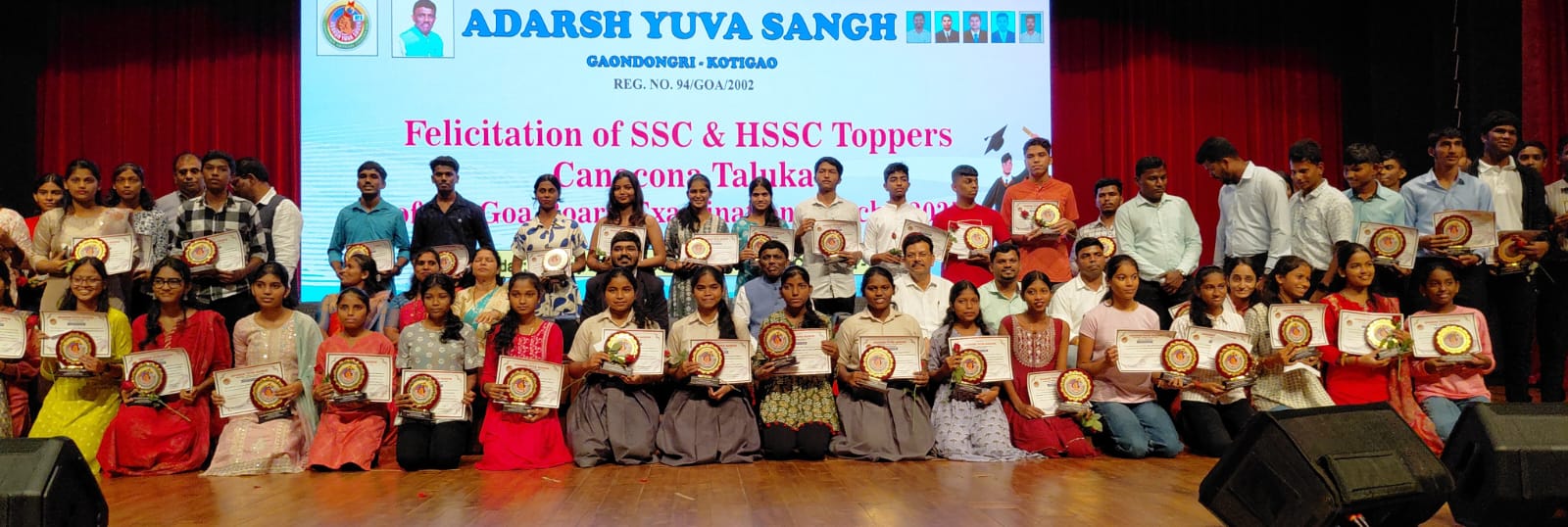 Canacona: In a heartening celebration of academic excellence, Adarsh Yuva Sangh, Gaondongrim-Khotigao, in collaboration with Shree Balram Education Society, felicitated the toppers and second-rank holders of the 2025 Goa Board SSC and HSSC Examinations from Canacona taluka.