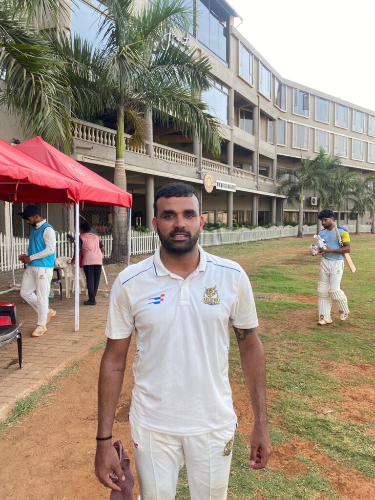 Margao’s decision to bat first proved costly as they were bowled out for just 101 runs. Shubham Tari led the charge with a brilliant six wicket haul, dismantling the batting lineup. Chowgule responded strongly, posting 246 runs, with Gauresh Kambli scoring a steady half century to establish a commanding lead.