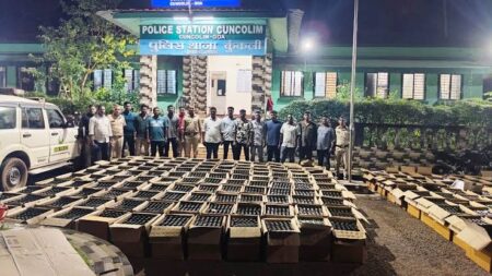 Team Goemkarponn CUNCOLIM: In a major crackdown on illegal liquor production, Cuncolim Police seized an Eicher truck loaded with 458…
