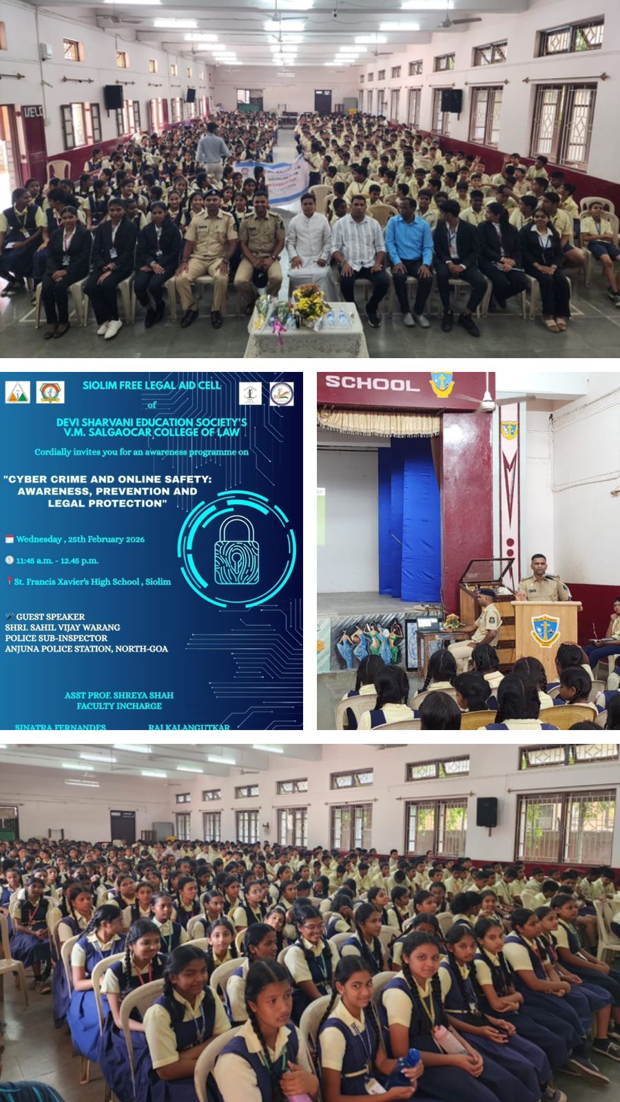 SIOLIM: A cyber awareness and online safety programme was conducted on February 25, 2026, at St. Francis Xavier’s High School, under the initiative of the Siolim Free Legal Aid Cell of V.M. Salgaocar College of Law, run by Devi Sharvani Education Society.
