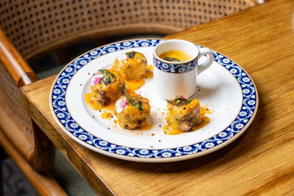 The menu features Hasher Mangsho kosha (slow-cooked duck) and Shorshe Ilish (Hilsa in mustard sauce), representing the grandeur of Nawabi Bengal and Murg Rezala (a creamy chicken stew) and Sheermal (a soft, sweet flatbread), which showcase the Mughal art of combining delicate spices and flavours for an unforgettable taste. Guests can also experience Anglo-Bengali fusion with dishes like Prawn Cutlets and Deviled Eggs, combining the best of British culinary influences with Bengali ingredients and spices.