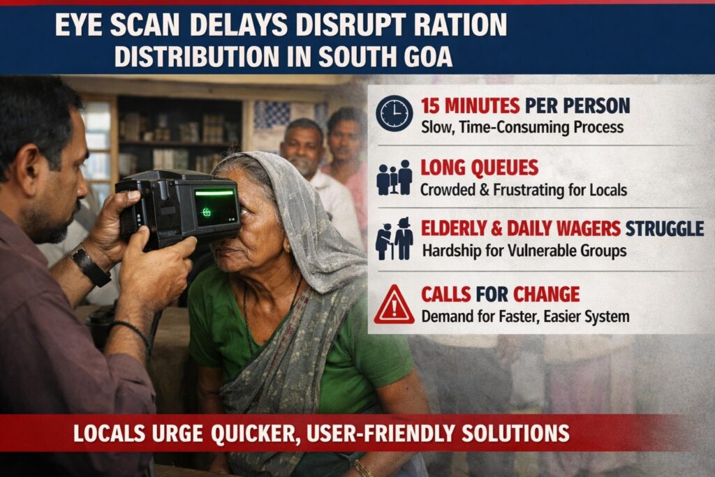 Margao: The introduction of compulsory eye-scanning for biometric authentication at fair price shops in South Goa has led to widespread inconvenience among ration card holders, with many reporting significant delays in the distribution process.
