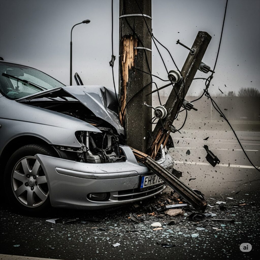 The impact was so severe that the car’s engine was flung several meters away from the main wreckage.