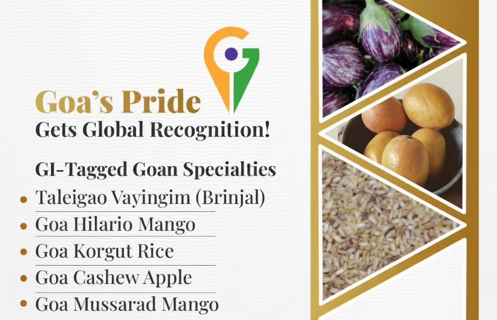 The newly registered Goan GI products are Taleigao Vayingim (Taleigao Brinjal), Goa Hilario Mango, Goa Korgut Rice, Goa Kaju Apple, and Goa Mussarad Mango.