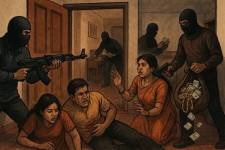The attackers, described as young and masked with helmets, spoke in what the family described as a “Bihari” tone. After tying the victims, the gang fled with gold ornaments and cash, the exact value of which is still being assessed.