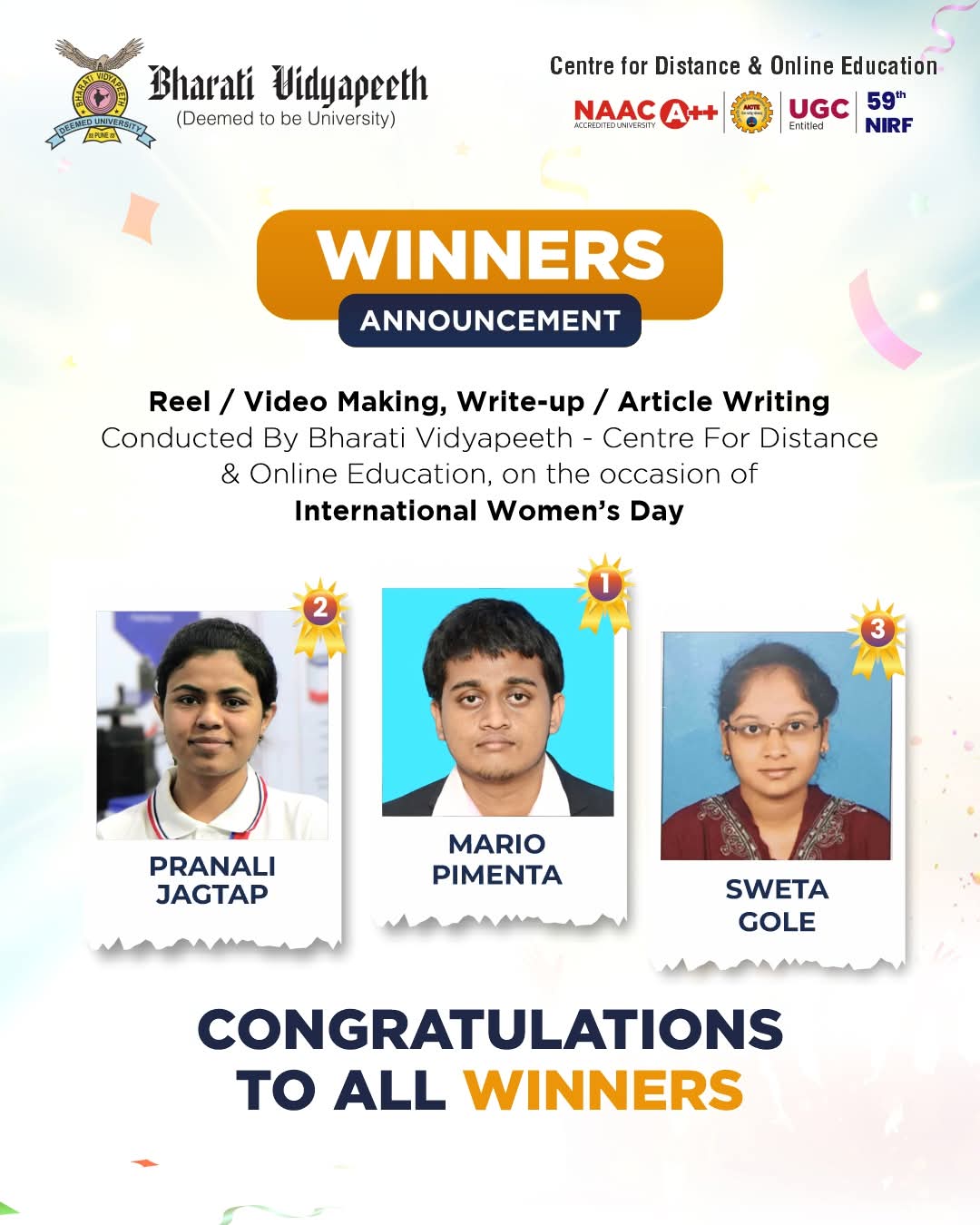 Panaji: Goan content creator Mario Pimenta secured first place in a national level Reel and Video Making competition organised by the Bharati Vidyapeeth Centre for Distance and Online Education in Pune, Maharashtra. The competition was held to mark International Women’s Day and attracted entries from participants across the country.