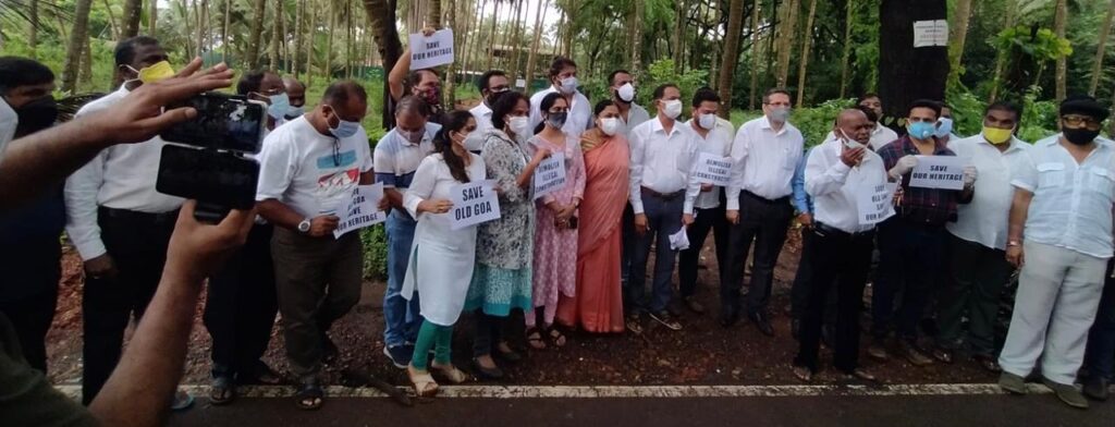 Chairman of Legal Cell of Goa Congress Adv. Carlos Alvares, Spokesman Arch. Tulio D’Souza, Mahila Congress National Secretary Miss Seema Fernandes, Goa Mahila Congress President Ms. Beena Naik, YC President Adv. Varad Mardolkar, local Panch & Cumbarjua Block Congress President Vishal Volvoikar, PCC General Secretary Janardhan Bhandari, Khemlo Sawant, St. Cruz leader Rudolf Fernandes, Virendra Shirodkar, Mohan Dhond along with other Congress Functionaries were present with ‘Save Old Goa’ posters and banners.
