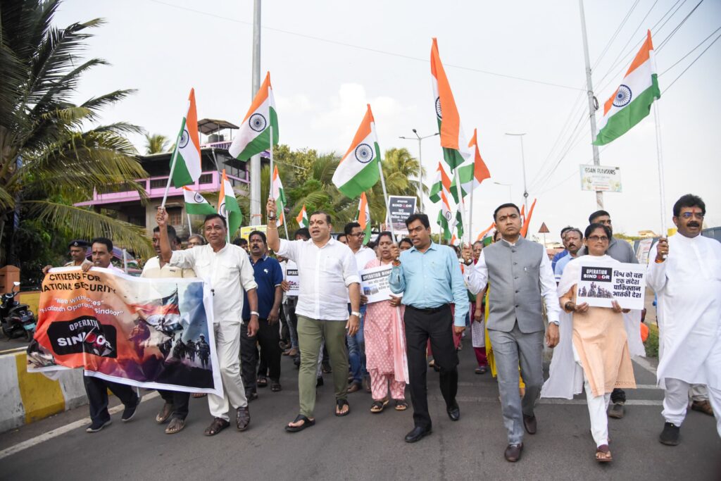 PORVORIM: In a powerful expression of unity and patriotism, Porvorim witnessed the Sindoor Yatra—a tribute to the bravery and sacrifice of the Indian Armed Forces in the wake of the recent India-Pakistan border tensions. The Yatra was held under the leadership of Shri. Rohan A. Khaunte, Minister for Tourism, ITE&C, Printing and Stationery and MLA of Porvorim, to reaffirm support for India’s military and national security.