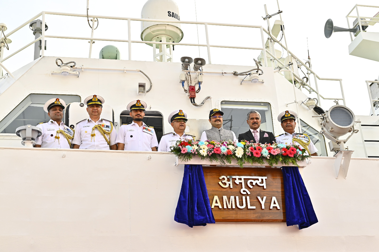 The ship was commissioned by Amitabh Prasad, IA&AS, Joint Secretary (IC), Ceremonial and Chief Administrative Officer, Ministry of Defence, in the presence of Inspector General Jyotindra Singh, Deputy Director General (HRD), senior dignitaries from the Central and State governments, and officials of Goa Shipyard Limited.