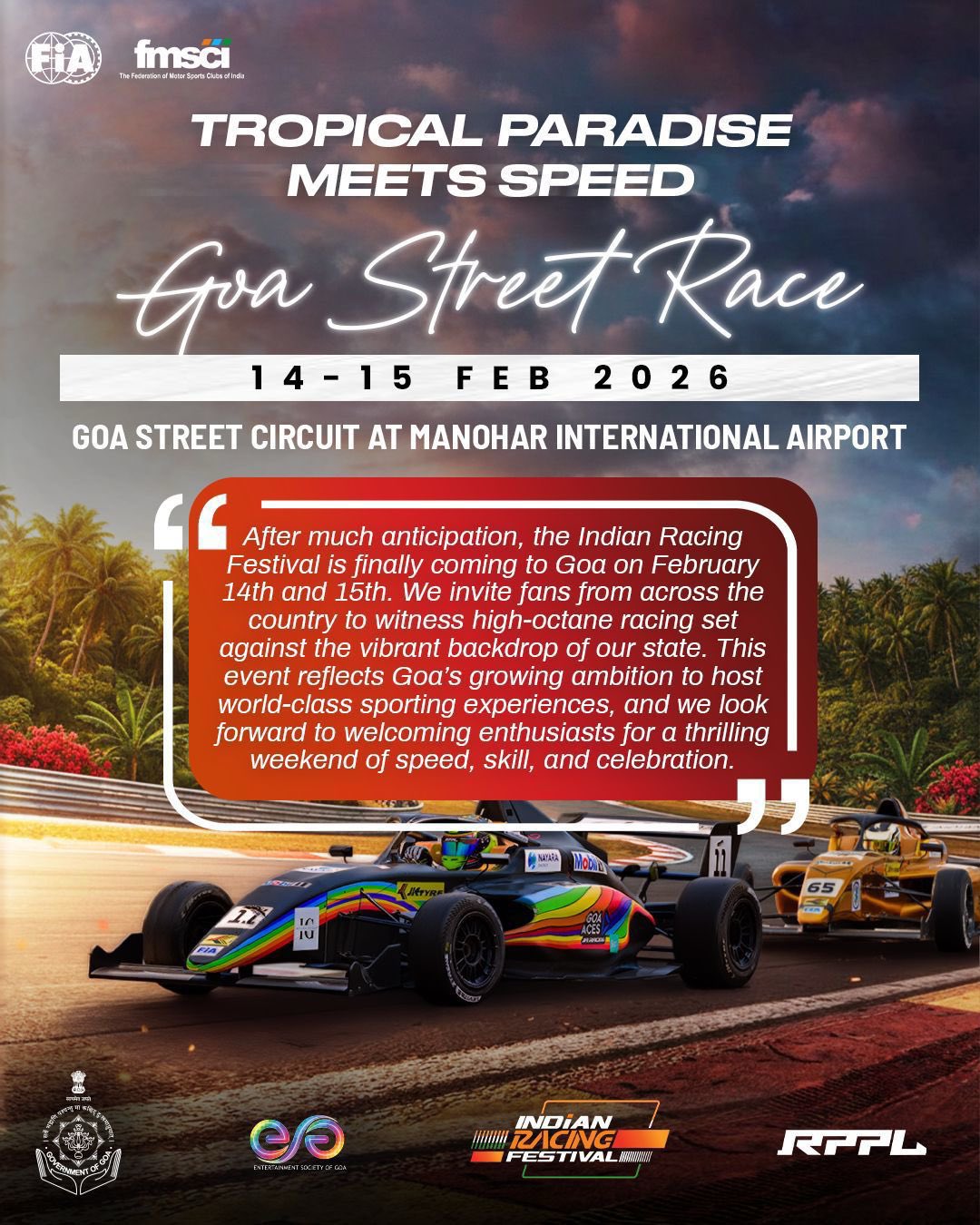 The Indian Racing Festival 2026 at the Goa Street Circuit (MOPA) is expected to not only showcase competitive motorsport action but also generate employment, promote allied industries and strengthen Goa’s image as a preferred venue for large-scale international sporting events.