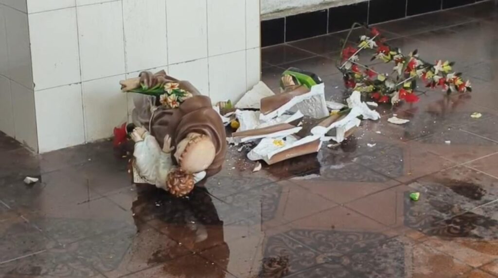 According to residents, CCTV footage from the chapel area captured a middle-aged man roaming outside around 1.15 am wearing only women’s underwear and a bra. He is suspected to have broken open the donation box and taken the cash before damaging the statue. The man’s unusual behaviour and the sacrilegious act have sparked outrage in the locality.