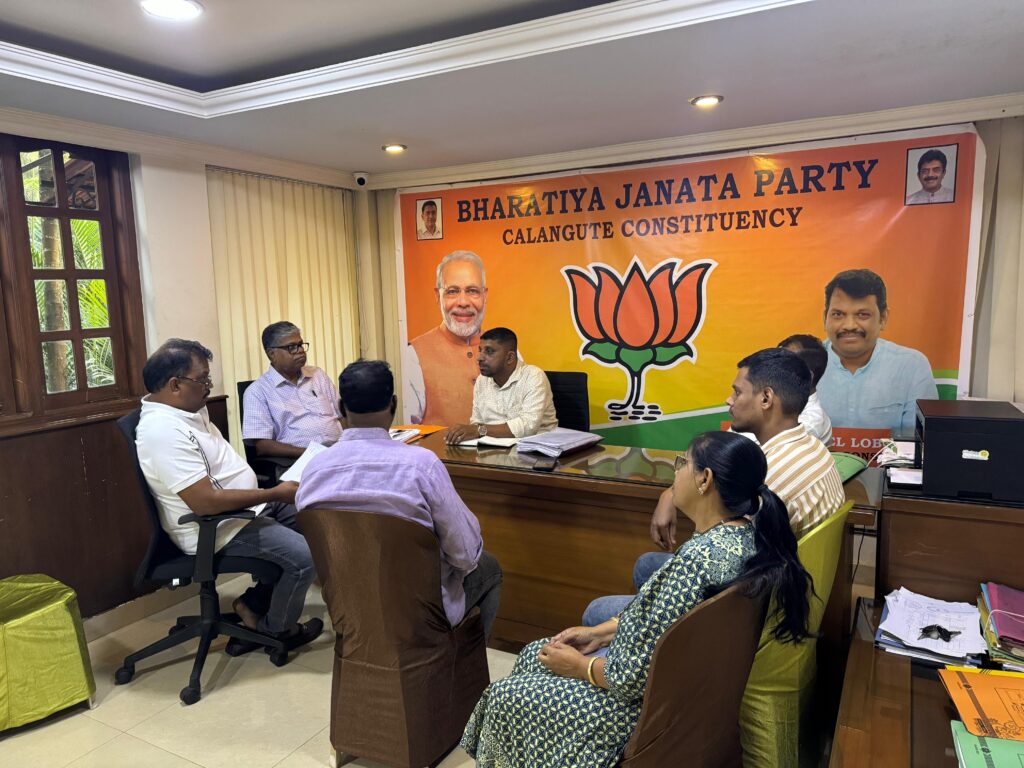 The meeting was held at the office of MLA of Calangute Michael Lobo on Wednesday 27th of Nov. In the presence of Goa state observer Premanand Mhambre , Mla Michael Lobo, Calangute Observer & North Goa District Vice President Shri Franky Carvalho , Mandal President Yeshwant Kandolkar, General Secretary Shri Sudesh Shirodkar, Coordinator Shankar Naik, Mahila Morcha President . Geeta Parab & others.